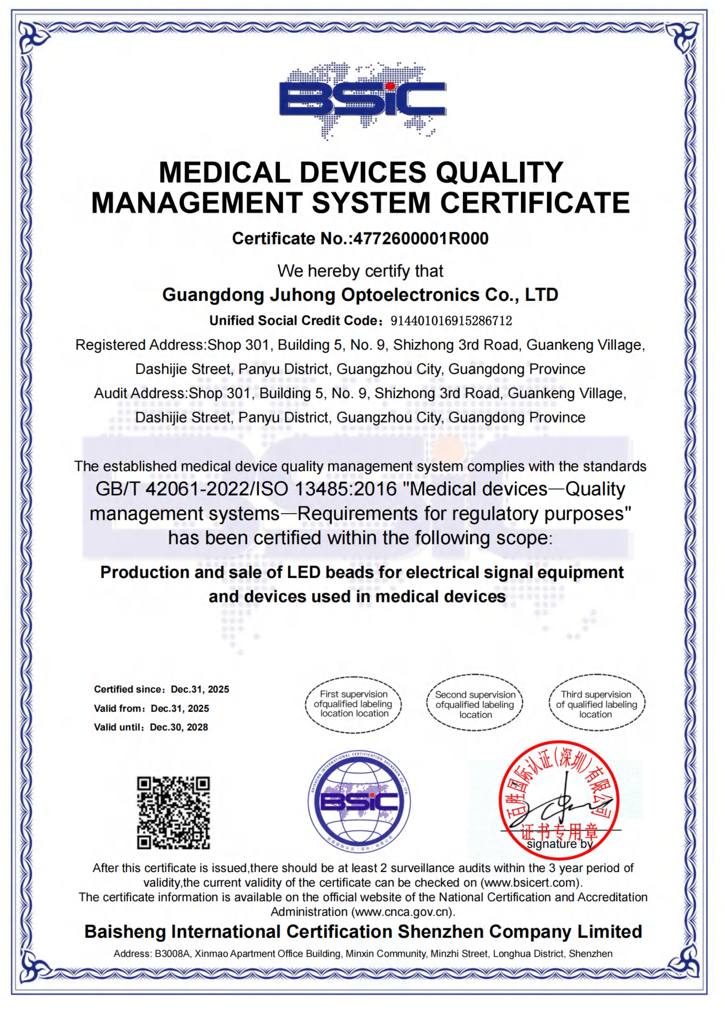 Announcement on the Certification of Our Medical Device Quality Management System